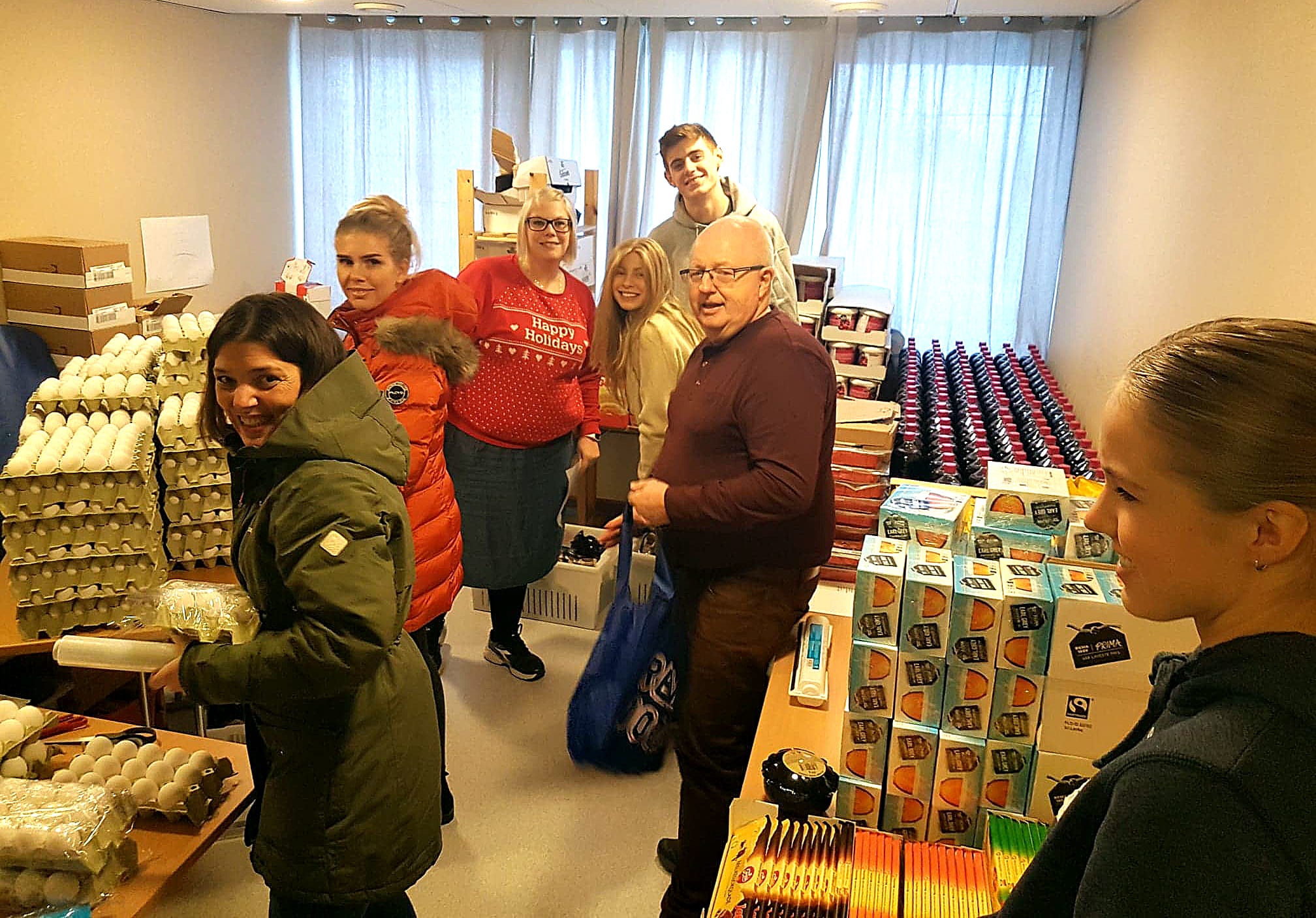I forbindelse med årets utdeling ble det i år servert julegrøt i kafeen, hvor mange frivillige hadde god tid til en prat med de som kom for å få hjelp. I tillegg hadde mange stilt opp dagen før og pakket matposer med mye deilig mat. Takket være flere lokale leverandører kan det gis mer hjelp for pengene ved matudeling enn ved å gi gavekort, som har vært gjort de siste årene.