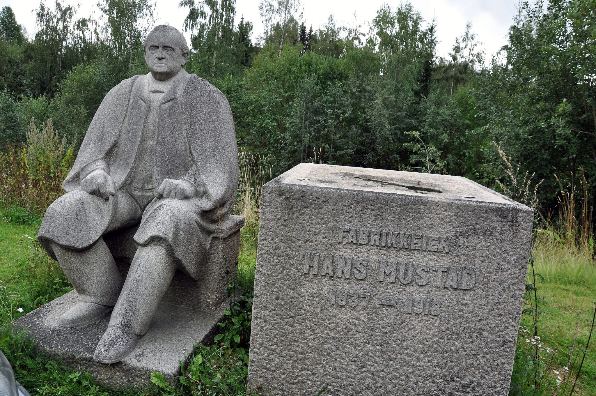 I vinter ble statuen av Hans Mustad fjernet fra krysset Raufossvegen/Hans Mustads gate. Den har ikke flyttet så langt på seg. Statuen kan du såvidt skimte der den står langs elvebredden ved Hunnselva inne på området til Mustads næringspark. Men den kommer tilbake, på nesten samme sted.