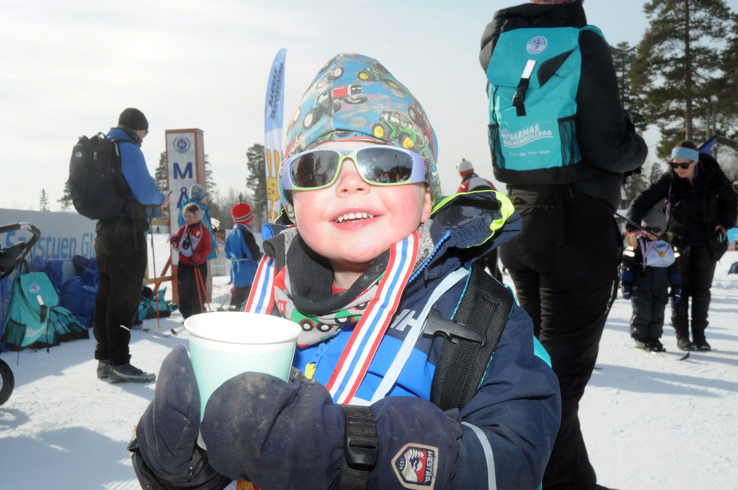 Eirik var klinkende klar på at han var fryktelig tørst etter å ha tatt tatt sin første gullmedalje. Han tok praktisk talt et helt pappkrus med saft på styrten før han tørket seg rundt munnen og ga pappa den siste skvetten. Det tar på å gå Holmenkollrenn, men med gull rundt halsen og premiesekk på ryggen var han et eneste stort glis.