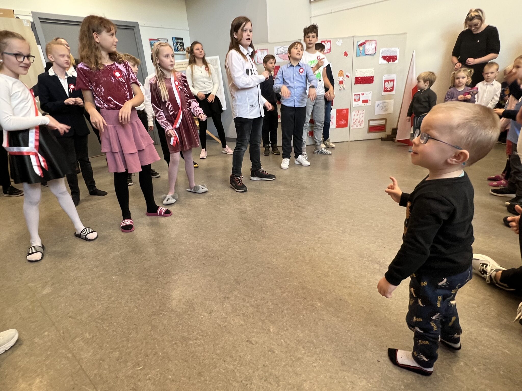Tre år gamle Olivier Zerebiec sprudlet av glede da han sammen med sine polske landsmenn sang og danset under feiringen av den polske nasjonaldagen, som er 11. november. 50 elever på den polske skolen i Gjøvik og deres foreldre feiret for første gang nasjonaldagen sammen.