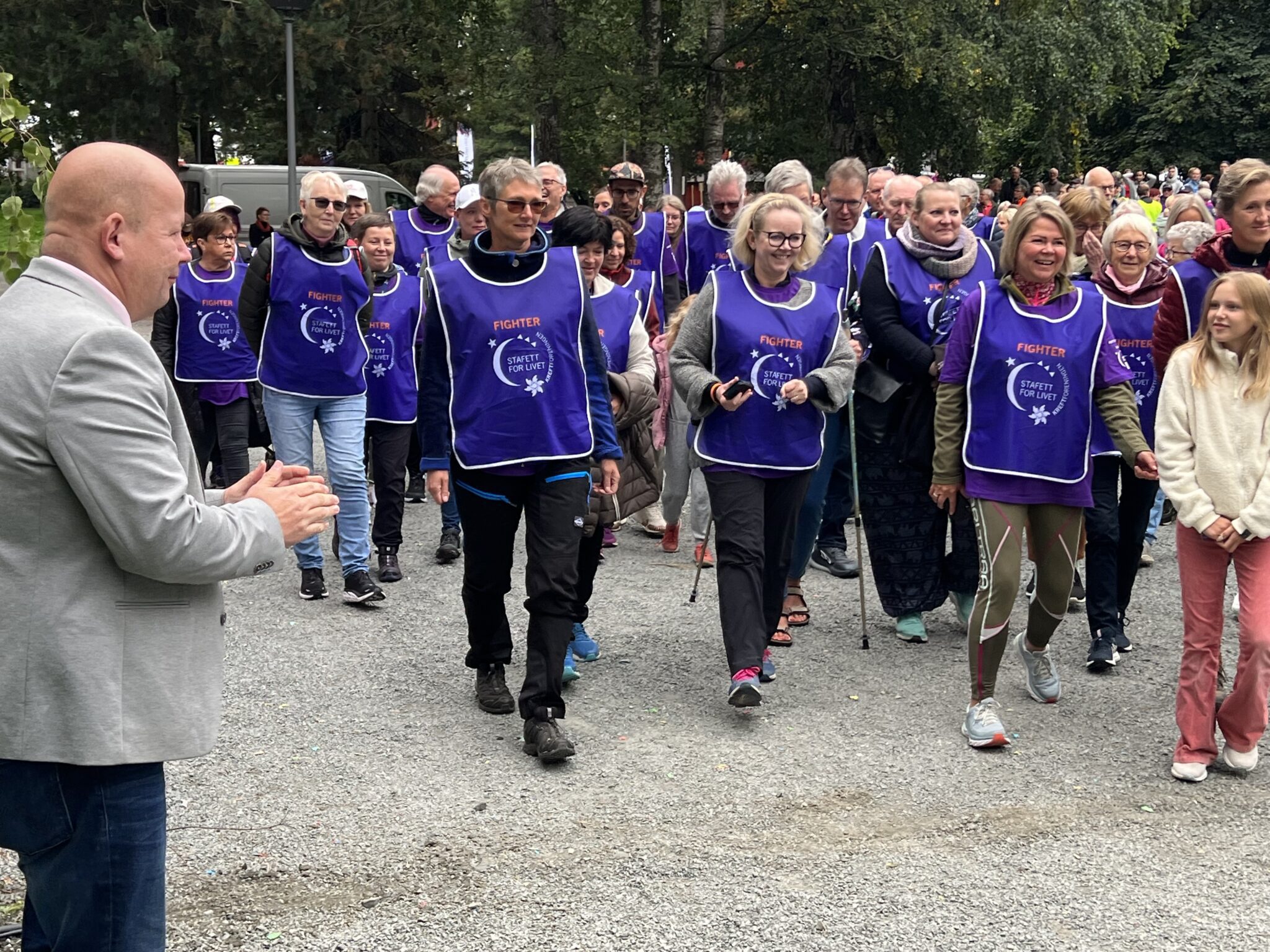 Ordfører Torvild Sveen sto langs løypa på Gjøvik gård og applauderte fram de 60 fighterne som deltok i helgens Stafett for Livet. I arrangementet som samlet inn penger til Kreftforeningen, var det mye fightervilje, håp og livsglede.