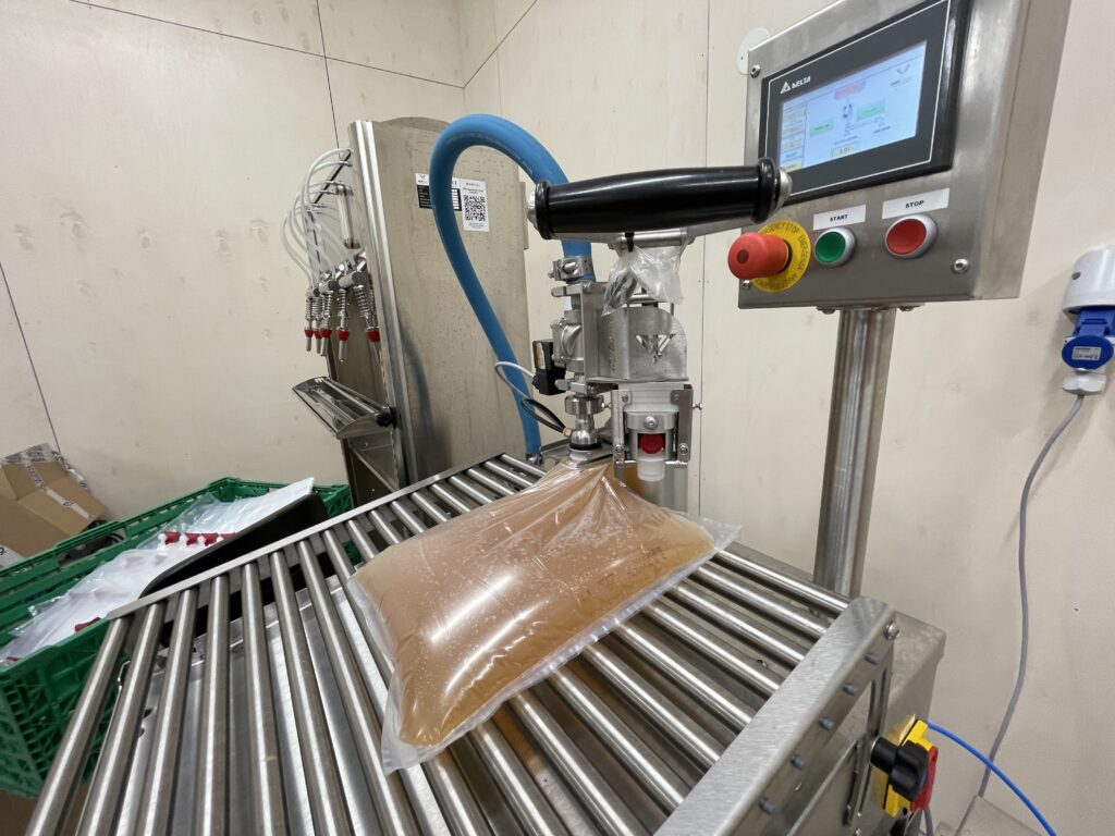 Det nye presseriet i Vardal har nå fått epleprodusenten på Bilitt som kunde. I disse dager er det eplesorten er Aroma det lages juice av. I tillegg har de en del private kunder som leverer hageeplene sine for pressing. Noen kasser med hageepler står og venter på tur.