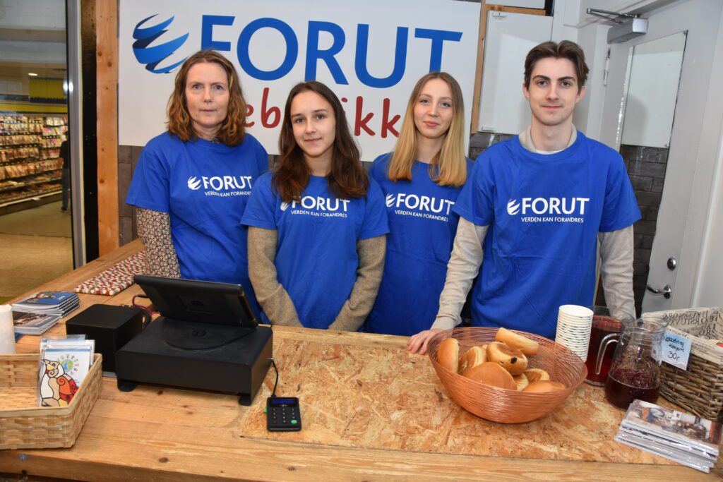 Butikksjef Bjørg Astri Slettum i FORUT har fått hjelp av elever ved salg- og reiselivslinja ved Gjøvik videregående skole til å både klargjøre og bemanne butikken. I tillegg bidrar en rekke frivillige, og CC Gjøvik stiller med gratis lokale.