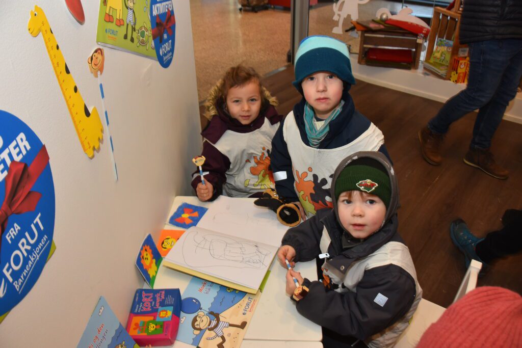 Julebutikken har også lekekrok for barna og lesestund for de yngste. De største barna fra Tongjordet barnehage var invitert til FORUT første lesestund.